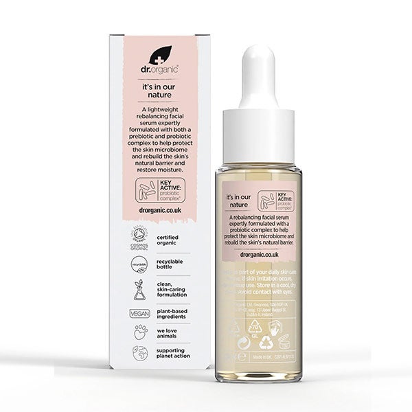 O Sérum Protetor de Probióticos Skin Calm da Dr. Organic é um tratamento facial avançado, formulado para reequilibrar o microbioma cutâneo, restaurar a barreira de hidratação e proteger a pele contra as agressões externas.