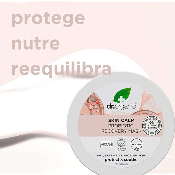 A Máscara Probiótica Skin Calm da Dr. Organic é um tratamento intensivo projetado para hidratar profundamente, acalmar e restaurar a barreira cutânea, proporcionando alívio imediato para peles estressadas, sensíveis e propensas à irritação.