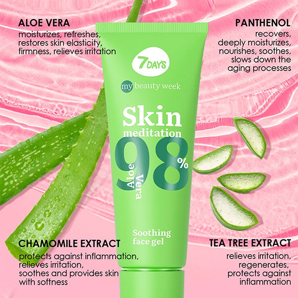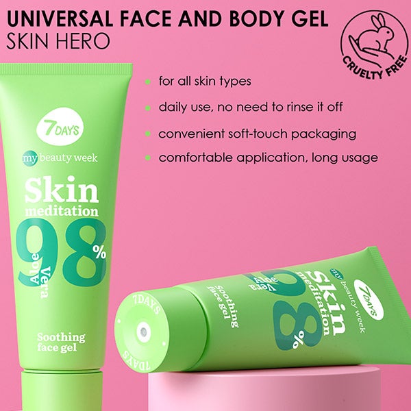 O gel universal para rosto e corpo hidrata profundamente, acalma e refresca.