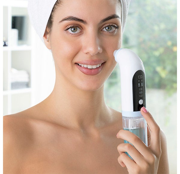 Um hidrolimpiador facial de impurezas que permite uma limpeza profunda da pele do rosto de forma natural e não invasiva, sem produtos químicos e hidratando com água a área a ser tratada para um maior cuidado e proteção da pele. A versão mais inovadora e avançada dos limpadores faciais de cravos, já que os elimina pela raiz, não superficialmente como outros limpadores convencionais. Possui um duplo reservatório de água (40 ml + 40 ml), um fornece água limpa à pele e o outro armazena a água com a sujeira, as peles mortas e as impurezas. Conta com 6 cabeçais intercambiáveis de vários tamanhos (S, M, L) para se adaptar a todas as áreas do rosto e aos diferentes tipos de pele (normal ou sensível). Seus 3 níveis de intensidade correspondem a 3 modos de limpeza, conforme o tipo de pele (intensidade suave para peles secas, intensidade média para peles normais e mistas e intensidade alta para peles oleosas). Possui um grande poder de sucção, é ergonômico e muito fácil de usar. Abre os poros e elimina cravos, pontos negros e acne, melhorando a aparência da pele. Além disso, proporciona uma sensação refrescante e estimula a produção de colágeno, retardando o envelhecimento da pele. Pelo seu design recarregável, leve e portátil, pode ser usado com maior comodidade e levado facilmente a qualquer lugar. O reservatório de água é removível para facilitar a sua limpeza. Inclui cabo de carregamento USB para micro USB.