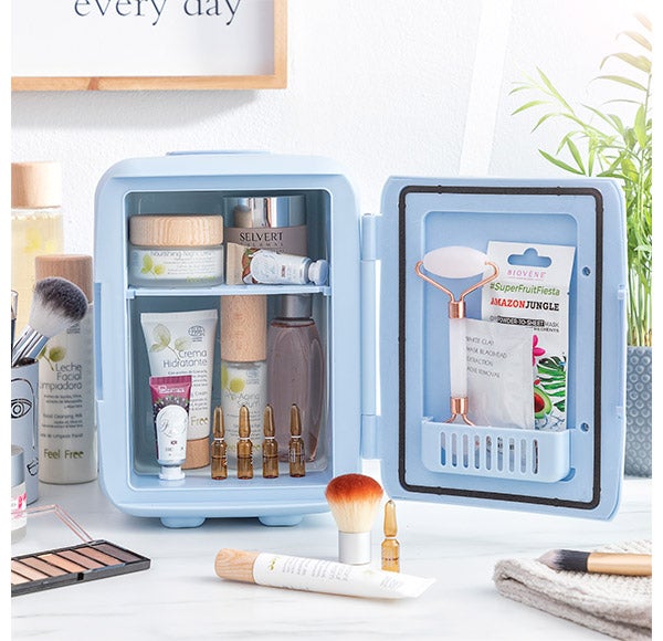A mini geladeira para cosméticos Frescos InnovaGoods é perfeita para manter refrigerados e em condições ótimas uma grande variedade de produtos cosméticos, como cremes, máscaras e ampolas faciais, séruns, contornos de olhos, cremes corporais, brumas e sprays faciais, rolos e pedras, produtos de beleza orgânicos com ingredientes naturais, etc. Sua função frio também é ideal para refrigerar bebidas e refrigerantes, medicamentos, etc.