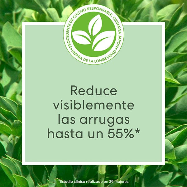 O segredo deste contorno de olhos é a Erva da Longevidade - potencializada com trealose para uma maior eficácia - combinada com niacinamida e papoula californiana, potentes extratos botânicos. Com mais vitaminas e minerais que o espinafre ou o kale, a Erva da Longevidade faz parte da dieta local em Okinawa no Japão, onde os habitantes vivem mais que em qualquer outro lugar. Este superalimento rico em minerais é colhido de forma responsável sem usar produtos químicos, pesticidas ou fertilizantes.