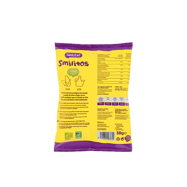 Gusanitos 100% ecológicos de milho assado e azeite de oliva extra virgem, o sabor de sempre mas sem aditivos ou sal adicionado. Porque nos importa a alimentação e nutrição do seu filho e a sua, mas também sem esquecer que podemos desfrutar de snacks ecológicos para nossos pequenos. Estes Smilitos são ideais para qualquer momento do dia ou para levar ao parque.
