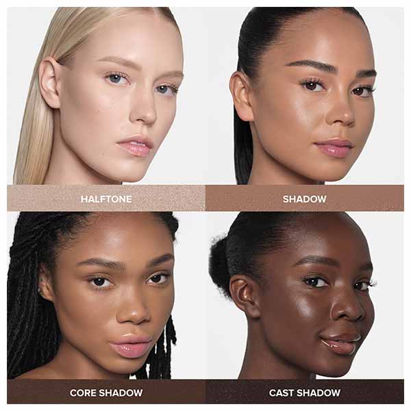 Extraia uma pequena quantidade de produto e aplique diretamente nas áreas que deseja minimizar e esculpir, como maçãs do rosto, têmporas, mandíbula, laterais do nariz e abaixo da ponta do mesmo. Esfume com um pincel, esponja ou as pontas dos dedos até alcançar a cobertura e o look desejados.