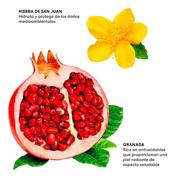 Formulada com erva de São João para fornecer proteção antioxidante, além de uma mistura de peptídeos e ceramidas para ajudar a suavizar e alisar a aparência da textura da pele.
