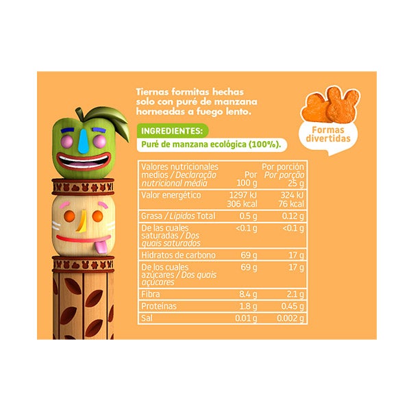 Primeiro snack infantil com 0% de açúcar adicionado nem adoçantes ou aditivos, feito com um único ingrediente: fruta 100% orgânica.