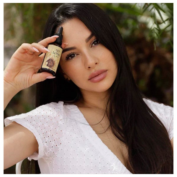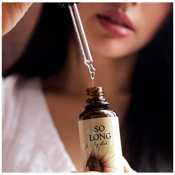So Long by Luh é um óleo capilar que combina ingredientes naturais como o óleo de Vitis vinífera, argan, jojoba, girassol e óleo de algas, com vitaminas C, D, E, F e ceramidas de aveia para proporcionar uma hidratação profunda, nutrição e reparação do cabelo. Protege contra agressões diárias e raios UV, melhora a resistência da cor às lavagens, reduz a perda de umidade, controla o frizz, melhora o brilho, repara pontas duplas e fortalece a fibra capilar e o folículo piloso.