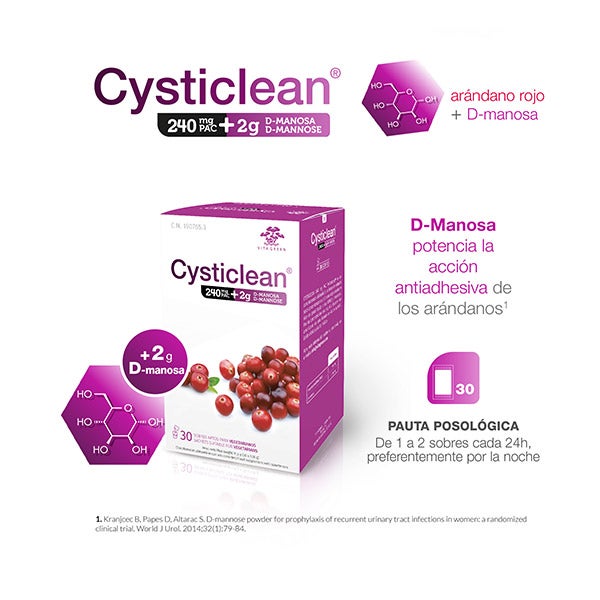 Cada sobre contiene: 500 mg de extracto seco de arándono rojo americano con 240 mg de PAC y 2000 mg de D-manosa.