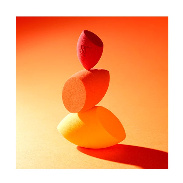 Triângulo de Esponjas Sunsoaked. A icônica esponja MCS de maquiagem em três tamanhos diferentes.