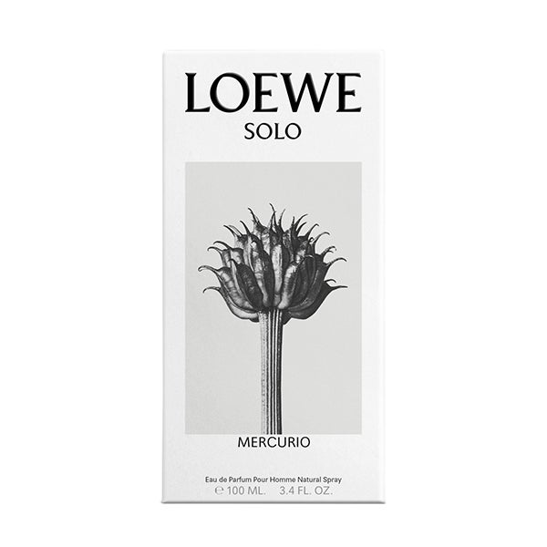 LOEWE Solo Mercúrio é o primeiro Eau de Parfum da família LOEWE Solo, uma fragrância profunda e misteriosa projetada com acordes opostos perfeitamente equilibrados com folha de figueira, tabaco mel, âmbar e neroli.