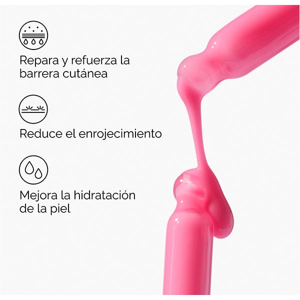 Ajuda a manter a barreira cutânea ao reduzir a secura e as vermelhidões, ao mesmo tempo que confere o tom rosado característico do sérum.
