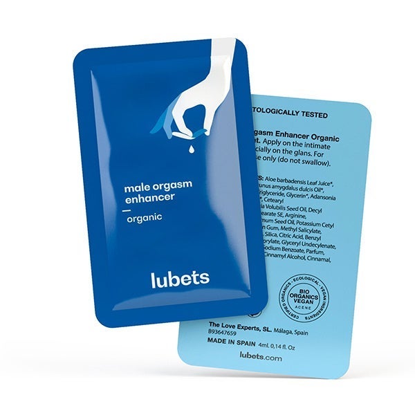 Potenciador de orgasmo masculino: Arginina, óleo de amêndoas doces, óleo de baobá e óleo de cardamomo, aloe vera e sacha inchi.