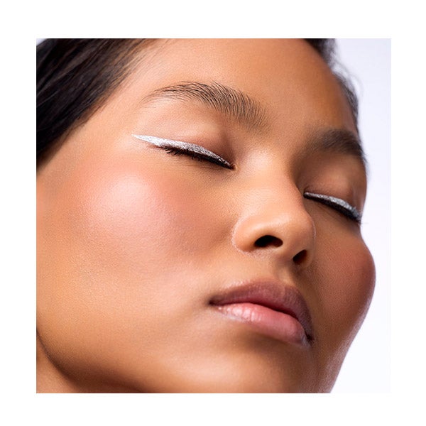 Para conseguir o delineado perfeito com o delineador Space Glam Liquid Effect 010 Moonstone Metallic da Catrice, mantenha o pincel o mais próximo possível da raiz dos cílios superiores e trace uma linha do canto interno ao canto externo do olho. Trace um pequeno delineado para um look diurno ou aplique mais camadas para criar um design ousado e dramático.