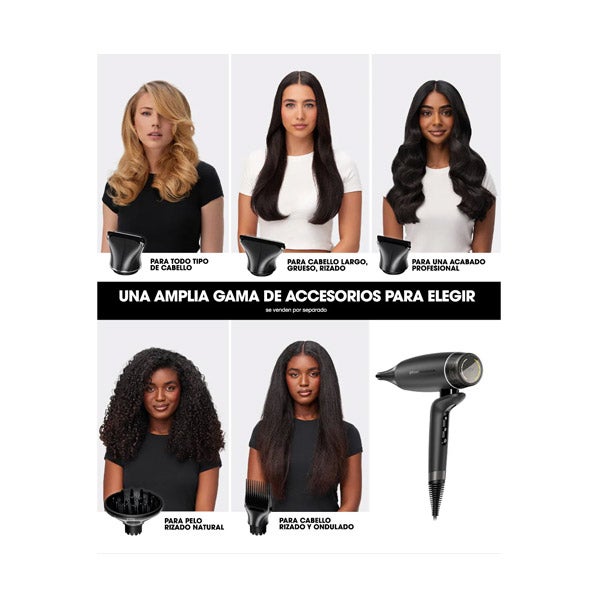 A conexão magnética incorpora um sistema de bloqueio que evita giros durante o desembaraço e uma potente fixação magnética que mantém o difusor firme e estável durante toda a sua rotina de penteado. Para cachos naturais definidos, polidos e sem frizz³, o difusor profissional para cachos é seu aliado de penteado indispensável.