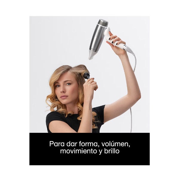 A saída de ar de 65mm está projetada para um penteado concentrado com x2,2 vezes mais volume nas raízes¹. Sua forma contornada cria um fluxo de ar suave e potente para um controle máximo da secagem.