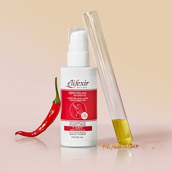 Elfexir Dermo Spicyslim é um óleo seco indutor de queima de gordura em áreas rebeldes.
