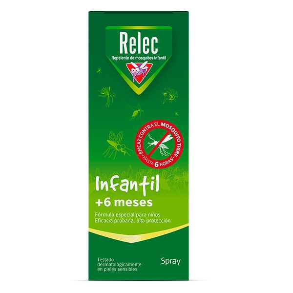 Relec Infantil +6 meses é um spray repelente de mosquitos especialmente formulado para bebês e crianças a partir de 6 meses.