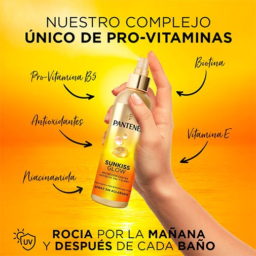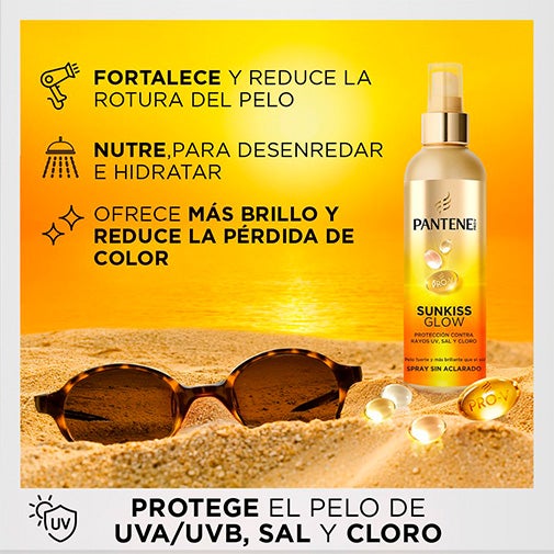 Pantene Sunkiss Glow: Tratamento Sem Enxágue. Este verão, aproveite um cabelo forte e saudável! Enriquecido com Pro-Vitamina B5 e Vitamina E, esta fórmula leve e não oleosa nutre e repara profundamente o seu cabelo, mantendo-o fresco e sem frizz, além de protegê-lo dos danos causados pelos raios UVA, UVB, sal e cloro.