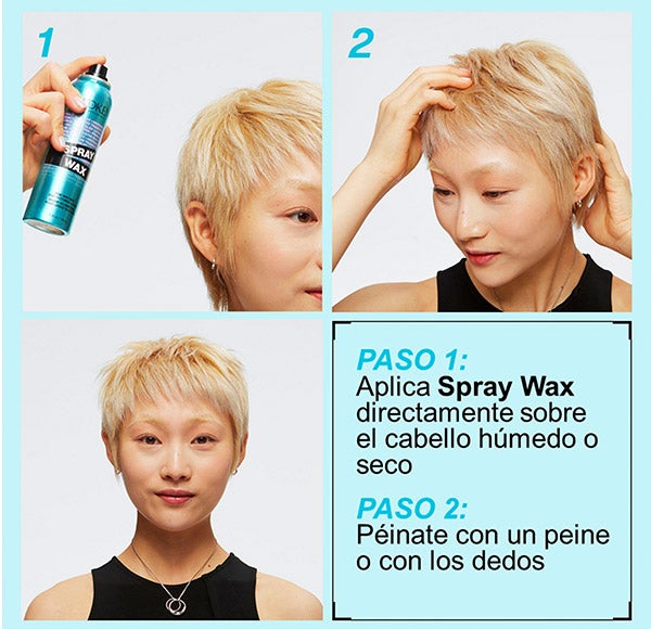 ¿Cera em spray? ¡É possível! A cera em formato spray, Spray Wax cria estilos cheios de textura e definição com total leveza, graças à sua tecnologia inovadora.