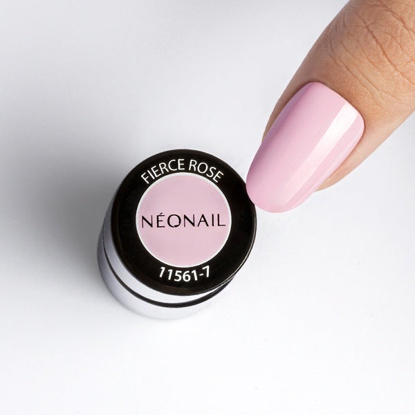 Combine a cor Brave Sky com tons como Fierce Rose, um esmalte semipermanente rosa claro com acabamento clássico, para criar uma manicure equilibrada e elegante.