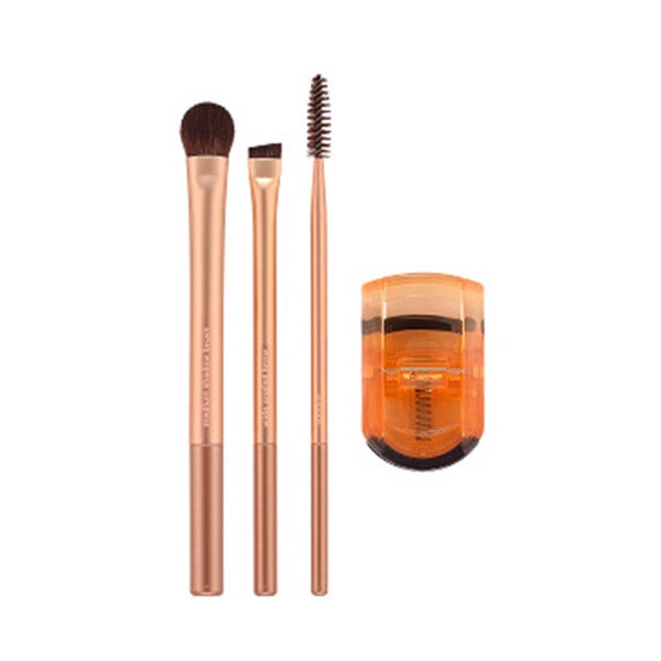 Contém um curvador de cílios portátil, escova para cílios e sobrancelhas, pincel chanfrado para fazer delineador ou polir suas sobrancelhas e um pincel com escovinha perfeito para integrar suas sombras.