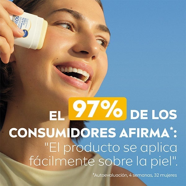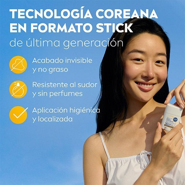 NIVEA SUN Proteção Facial Respirável Stick UV Toque Sedoso FPS 50+ proporciona proteção facial que vai além do FPS. Nossa tecnologia UV respirável mais conveniente combate o fotoenvelhecimento sem obstruir os poros e proporciona uma proteção muito alta contra os raios UVA/UVB. Com tecnologia de stick coreana de última geração, protege as áreas faciais delicadas enquanto deixa a pele respirar. A fórmula de Toque Sedoso não deixa acabamento oleoso, é invisível, resistente à água, sem perfume e não comedogênica. Sua forma inovadora de gota mantém as mãos limpas, ideal para o uso diário e a reaplicação ao longo do dia. Leve, dermatológica e oftalmologicamente aprovada, garante uma proteção solar invisível e à prova de suor para peles delicadas a qualquer momento do dia.