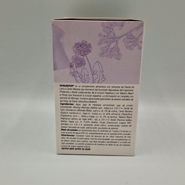 Xanadepur é um suplemento alimentar com extratos de Dente-de-leão e Cardo-mariano para apoiar as funções depurativas do organismo, Fillanto e Boldo para apoiar a função hepática e com Rabanete Negro e Funcho para apoiar a função digestiva. A formulação é completada com extrato de Moringa.