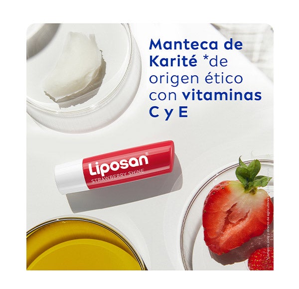 A resposta é Liposan Strawberry Shine. Este bálsamo labial tem um delicioso aroma de morango, dá aos seus lábios um brilho sutil com tom avermelhado e os protege do frio, do vento e da secura.