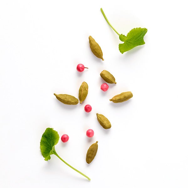 Sua fragrância vive no presente, influenciada pela energia da modernidade. Imprevisível, surpreende pela sua originalidade, como os acordes picantes das notas de saída, uma mistura de cardamomo, pimenta rosa e folhas de violeta.