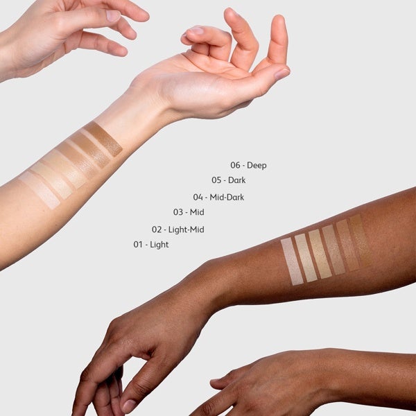 Disponível em 6 tonalidades versáteis, sua adaptabilidade e capacidade de sobreposição o tornam adequado para uma ampla variedade de tons de pele.