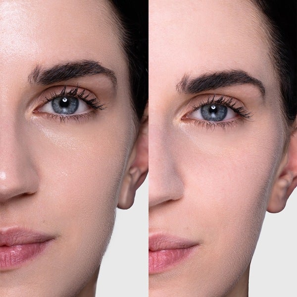 Os pós esféricos presentes na fórmula difundem a luz, minimizam os poros e as linhas finas, devolvendo um acabamento pronto para estúdio.