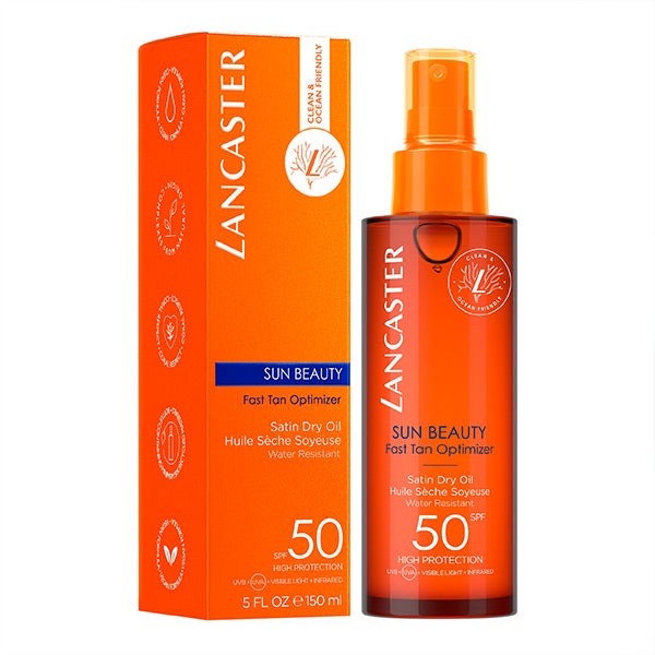 Con un acabado seco efecto satinado y actuando en la mitad de tiempo de exposición solar, ofrece un bronceado dorado más rápido, profundo y homogéneo.