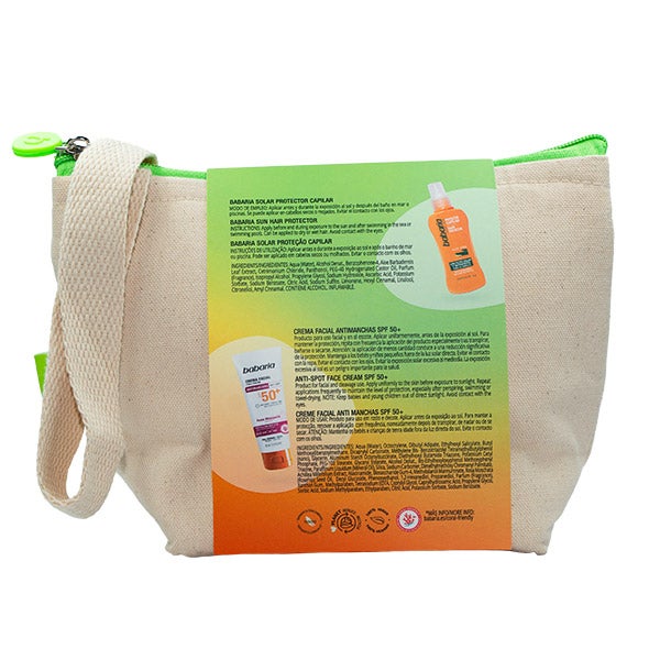 Conjunto de proteção solar facial e capilar resistente à água e antimanchas com rosa mosqueta