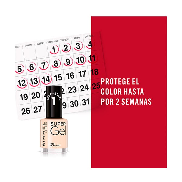 Aplicar 1-2 camadas de cor de Super Gel, seguido da camada de Super Gel Top Coat. Fácil de remover.