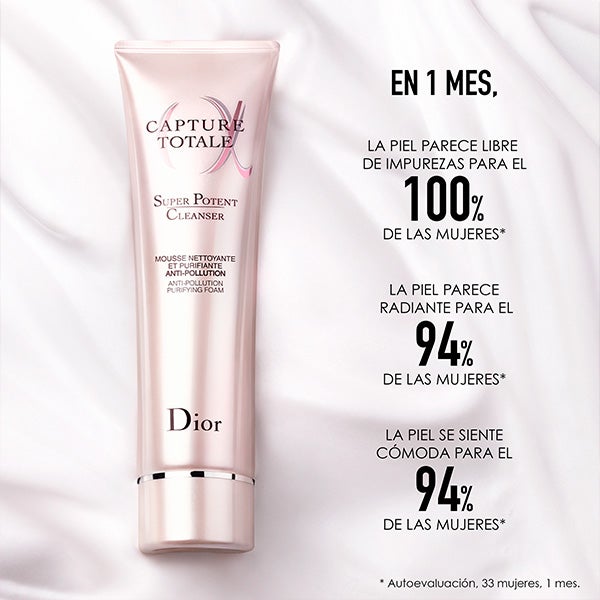 Descubra Capture Totale Super Potent Cleanser, a espuma de limpeza facial da Dior formulada com 83 %* de ingredientes de origem natural. Purificante e antipoluição, a textura em gel deste limpador para rosto transforma-se em espuma ao contato com a água. Atua para eliminar as impurezas, os resíduos de maquiagem ou, até mesmo, as partículas finas.