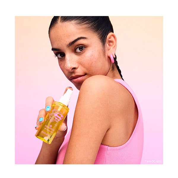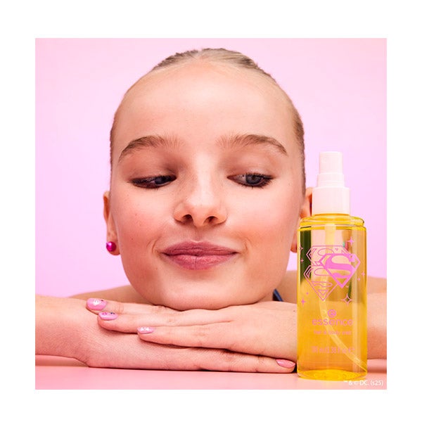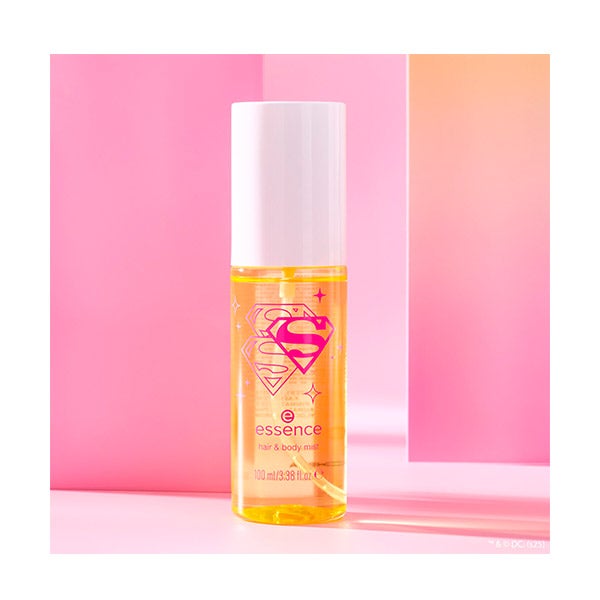 Refresque e revitalize enquanto se desloca com o spray refrescante para cabelo e corpo Superman! da Essence. Esta névoa compacta proporciona um impulso instantâneo ao seu cabelo e corpo, deixando um aroma leve, fresco e tropical baseado em notas de abacaxi e coco que duram. Perfeito para retoques durante todo o dia, é o seu melhor companheiro de super-herói para se refrescar rapidamente onde quer que esteja. Basta borrifar sobre o corpo e o cabelo, evitando o rosto, e sentir-se pronta para conquistar o dia.