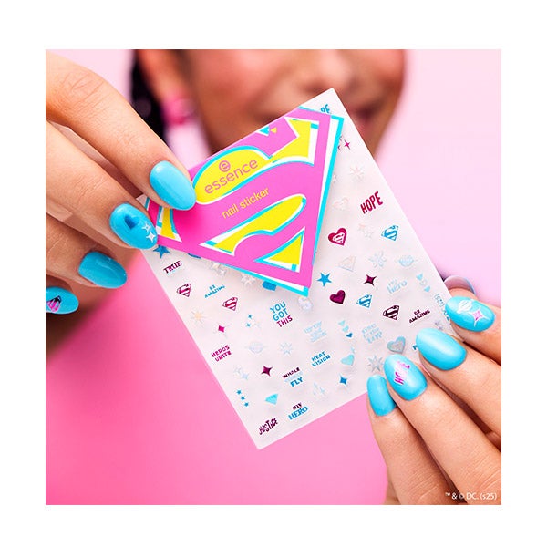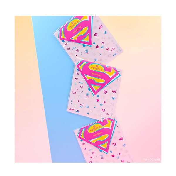 Potencie sua manicure com o conjunto de adesivos de unhas essence Superman. Esta divertida coleção inclui adesivos rosas e azuis com efeito holográfico, perfeitos para criar designs chamativos. Desde símbolos de super-heróis até citações motivacionais como "SEJA INCRÍVEL" e "MEU HERÓI", estes adesivos autoadesivos podem ser aplicados facilmente nas suas unhas, telefone ou outros acessórios para dar um toque personalizado e inspirador. Adicione um toque ousado e único ao seu visual e deixe sua criatividade brilhar!