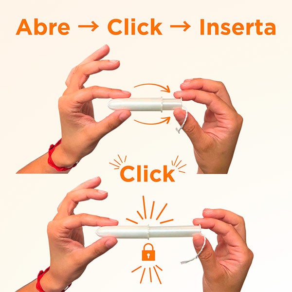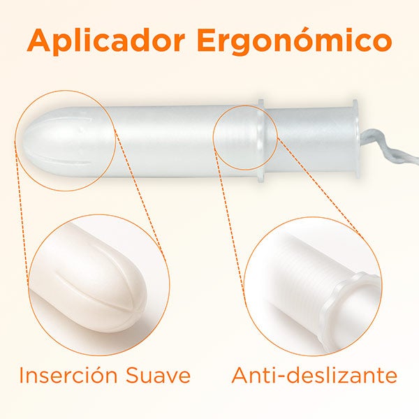 Inserção confortável e segura com aplicador de PE fabricado sem BPA nem ftalatos.