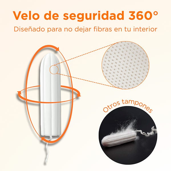 Os tampões Cottonlock são projetados para não deixar fibras no interior do corpo graças ao seu exclusivo véu de segurança 360º, que envolve completamente o núcleo absorvente, evitando que as fibras do algodão possam ficar aderidas às paredes vaginais.