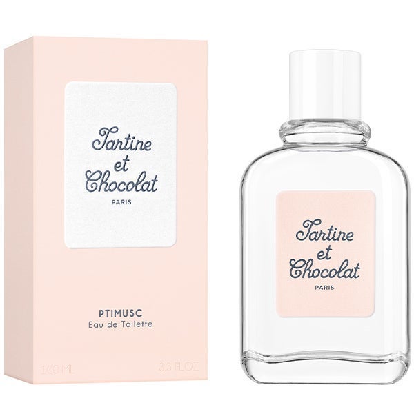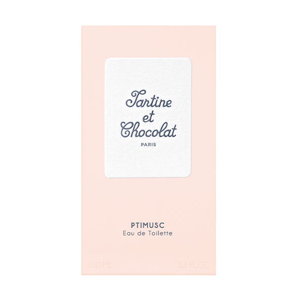 o frasco de Ptimusc é totalmente transparente. Os suaves tons rosas refletem a delicadeza do Eau de Toilette. A forma atemporal do icônico frasco Tartine et Chocolat agora é elaborada com 15% de vidro reciclado. A fórmula do Eau de Toilette contém 96%* ingredientes de origem natural.
