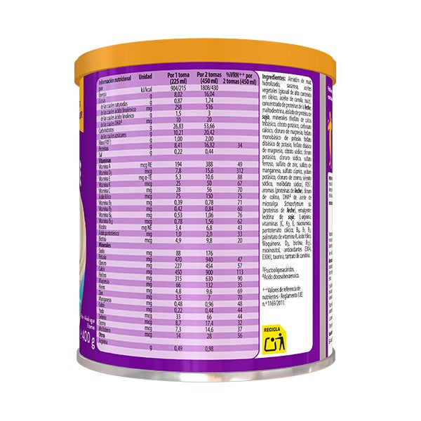 Dose = 49,1 g de pó em 190 ml de água para obter 225 ml. Pode ser aquecido mas não acima de 35ºC para manter as propriedades nutricionais.
