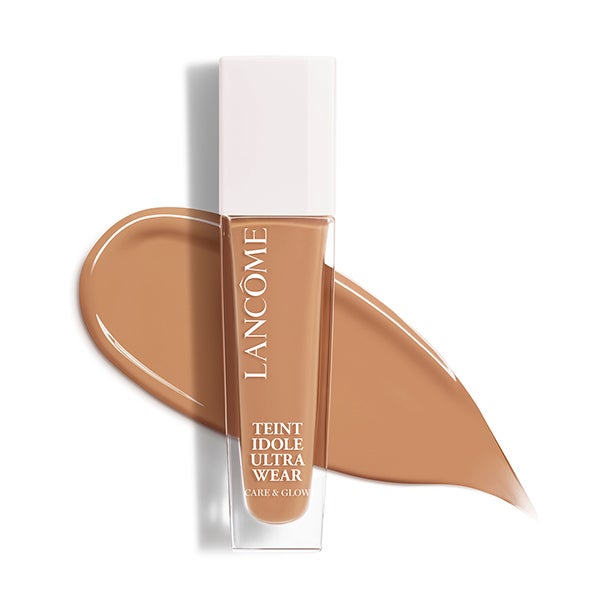 Teint Idole Ultra Wear Care & Glow Foundation proporciona una luminosidad que se mantiene impecable todo el día y sin transferencia, se mantiene en la piel y no marca líneas de expresión.