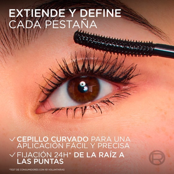 Eleve seus cílios a um comprimento semelhante ao das extensões com a L'Oréal Paris Telescopic Waterproof Extensionist Máscara de cílios.