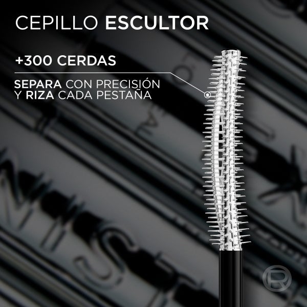 O pincel para esculpir com mais de 300 cerdas separa e curva cada cílio com precisão para um visual definido e sem grumos que dura até 24 horas** (**Teste de consumidores com 157 voluntárias).