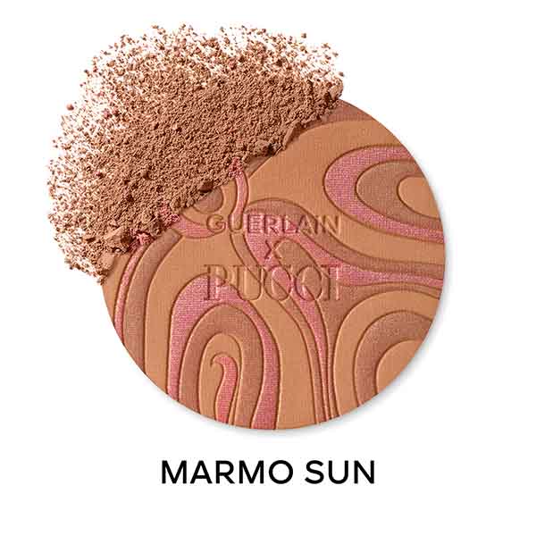 Camille Miceli, diretora artística da Pucci, e Violette, Diretora Criativa de Maquiagem da Guerlain, unem seus talentos para enaltecer os míticos pós bronzeadores Terracotta com o emblemático motivo Marmo da Maison Pucci. Uma nova interpretação das ondas do sol sobre o mar Mediterrâneo.
