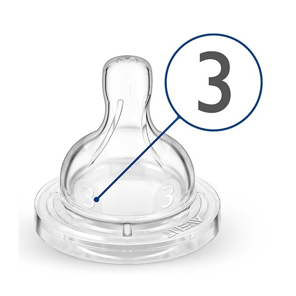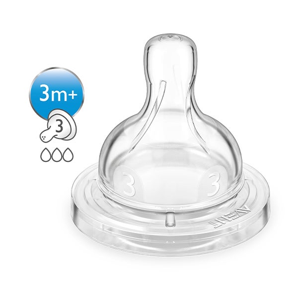 Nossa tetina anticólicos está projetada para fornecer uma alimentação sem interrupções. O ar é liberado para a mamadeira e longe da barriguinha do bebê. A textura estriada impede a contração da tetina e reduz as interrupções na alimentação e o desconforto.