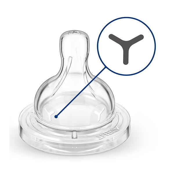 Nossa tetina anticólicos foi projetada para uma alimentação ininterrupta. O ar é direcionado para o interior da mamadeira em vez de ir para a barriguinha do bebê. A textura canelada impede que a tetina colapse e reduz interrupções e desconfortos.