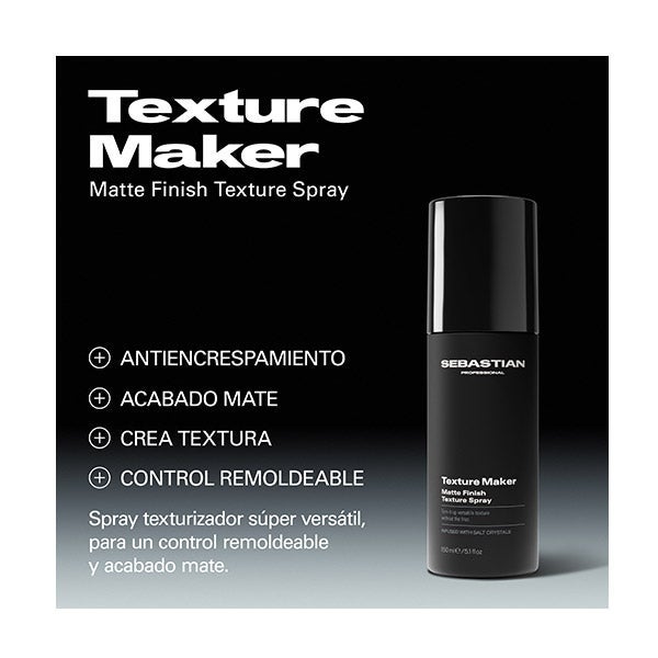 Sebastian Professional Texture Maker é um spray super versátil que oferece um controle remodelável e um acabamento mate. Enriquecido com cristais de sal marinho, este spray texturizador é adequado para todos os tipos de cabelo.