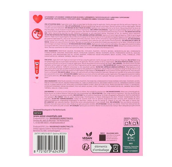 Acalma, hidrata e nutre seus lábios ao mesmo tempo com o kit de cuidado labial Sence The Kate Club. No interior, encontrará um óleo labial colorido, um esfoliante labial e uma relaxante máscara labial para dormir. Com este conjunto, você acordará com lábios tão suaves e beijáveis.