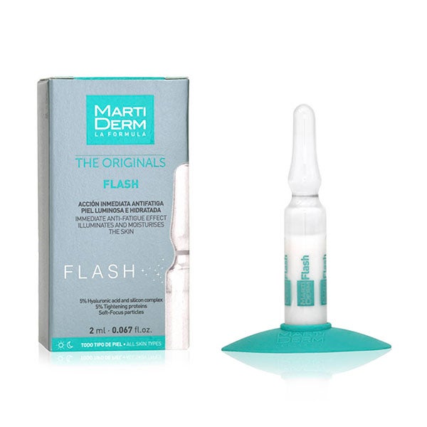 As ampolas flash com sua fórmula antifadiga imediata, disfarçam rugas e imperfeições, para uma pele deslumbrante instantaneamente.